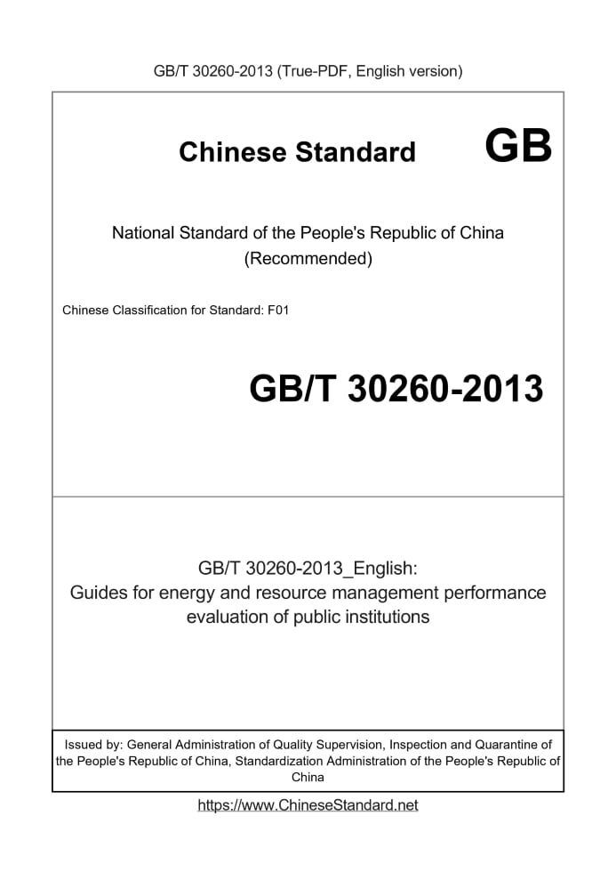 Delivery: <= 3 days. True-PDF full-copy in English will be manually translated and delivered via email. GB/T 30260-2013: Guides for energy and resource management performance evaluation of public institutions Status: Valid