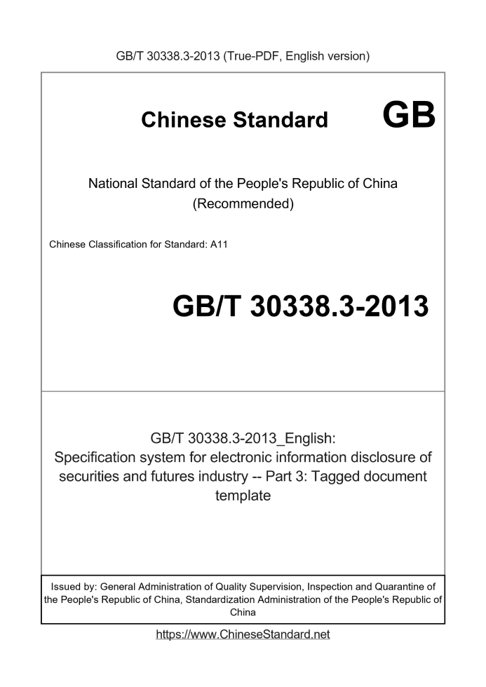 GB/T 30338.3-2013: Specification system for electronic information disclosure of securities and futures industry -- Part 3: Tagged document template