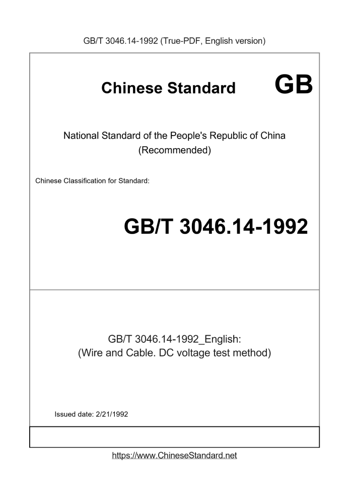 Basic dataStandard ID: GB/T 3046.14-1992 (GB/T3046.14-1992)Description (Translated English): (Wire and Cable. DC voltage test method) Sector / Industry: National Standard (Recommended) Date of Issue: 2/21/1992 Tips & Frequently Asked Questions:Question 1: How long will the true-PDF of GB/T 3046.14-1992_English be delivered?Answer: Upon your order, we will start to translate GB/T 3046.14-1992_English as soon as possible, and keep you informed of the progress. The lead time is typically 1 ~ 3 working days. The lengthier the document the longer the lead time.Question 2: Can I share the purchased PDF of GB/T 3046.14-1992_English with my colleagues?Answer: Yes. The purchased PDF of GB/T 3046.14-1992_English will be deemed to be sold to your employer/organization who actually pays for it, including your colleagues and your employer's intranet.Question 3: Does the price include tax/VAT?Answer: Yes. Our tax invoice, downloaded/delivered in 9 seconds, includes all tax/VAT and complies with 100+ countries' tax regulations (tax exempted in 100+ countries) -- See Avoidance of Double Taxation Agreements (DTAs): List of DTAs signed between Singapore and 100+ countriesQuestion 4: Do you accept my currency other than USD?Answer: Yes. If you need your currency to be printed on the invoice, please write an email to Sales@ChineseStandard.net. In 2 working-hours, we will create a special link for you to pay in any currencies. Otherwise, follow the normal steps: Add to Cart -- Checkout -- Select your currency to pay. |