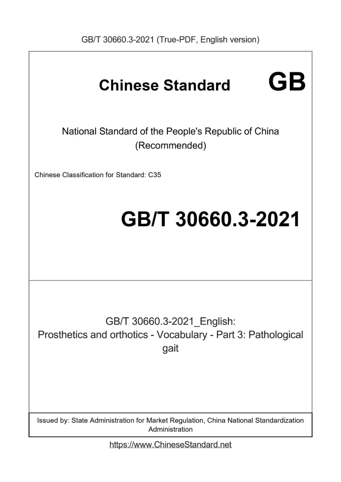 Delivery: <= 3 days. True-PDF full-copy in English will be manually translated and delivered via email. GB/T 30660.3-2021: Prosthetics and orthotics - Vocabulary - Part 3: Pathological gait Status: Valid