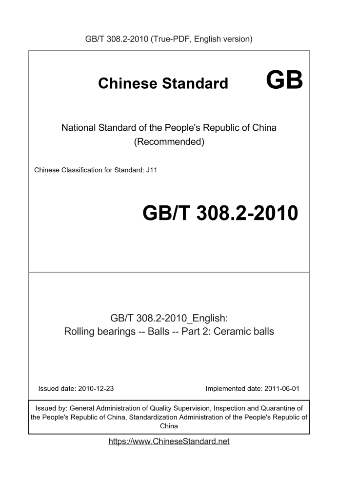 Delivery: <= 3 days. True-PDF full-copy in English will be manually translated and delivered via email. GB/T 308.2-2010: Rolling bearings -- Balls -- Part 2: Ceramic balls Status: Valid