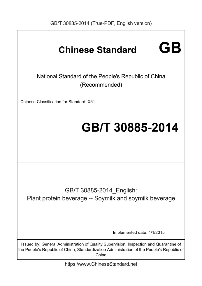 Delivery: <= 3 days. True-PDF full-copy in English will be manually translated and delivered via email. GB/T 30885-2014: Plant protein beverage -- Soymilk and soymilk beverage Status: Valid