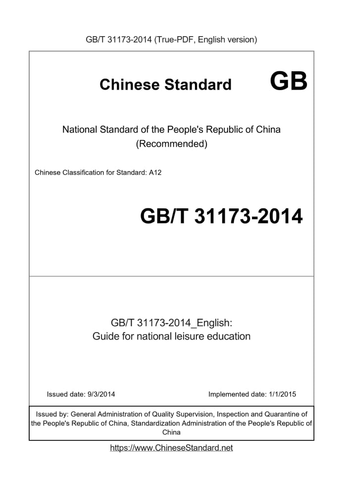 GB/T 31173-2014189 Add to Cart 3 days Guide for national leisure education Valid