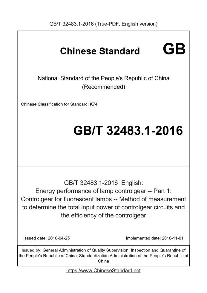 Delivery: <= 3 days. True-PDF full-copy in English will be manually translated and delivered via email. GB/T 32483.1-2016: Energy performance of lamp controlgear -- Part 1: Controlgear for fluorescent lamps -- Method of measurement to determine the total input power of controlgear circuits and the efficiency of the controlgear Status: Valid