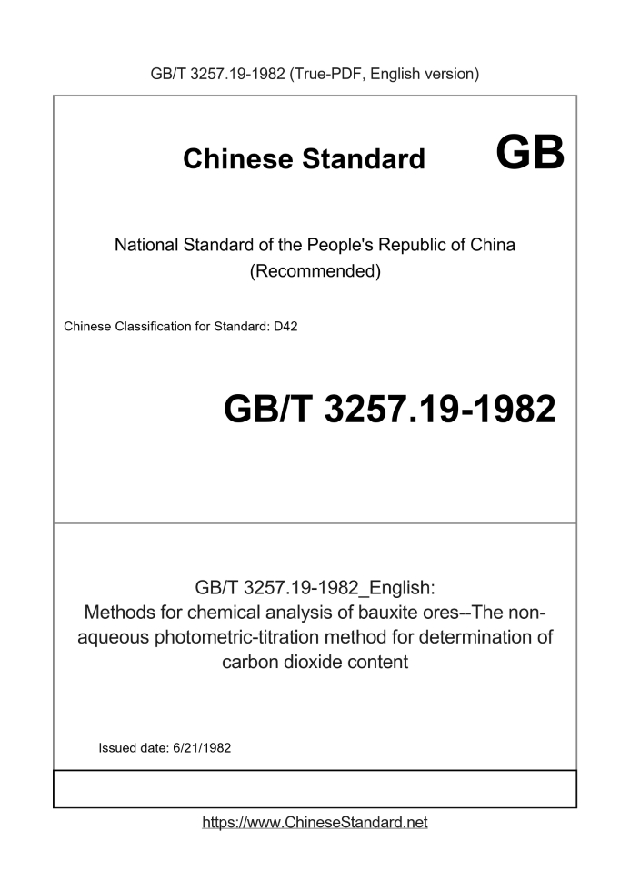 Basic dataStandard ID: GB/T 3257.19-1982 (GB/T3257.19-1982)Description (Translated English): Methods for chemical analysis of bauxite ores--The non-aqueous photometric-titration method for determination of carbon dioxide content Sector / Industry: National Standard (Recommended) Date of Issue: 6/21/1982 Tips & Frequently Asked Questions:Question 1: How long will the true-PDF of GB/T 3257.19-1982_English be delivered?Answer: Upon your order, we will start to translate GB/T 3257.19-1982_English as soon as possible, and keep you informed of the progress. The lead time is typically 1 ~ 3 working days. The lengthier the document the longer the lead time.Question 2: Can I share the purchased PDF of GB/T 3257.19-1982_English with my colleagues?Answer: Yes. The purchased PDF of GB/T 3257.19-1982_English will be deemed to be sold to your employer/organization who actually pays for it, including your colleagues and your employer's intranet.Question 3: Does the price include tax/VAT?Answer: Yes. Our tax invoice, downloaded/delivered in 9 seconds, includes all tax/VAT and complies with 100+ countries' tax regulations (tax exempted in 100+ countries) -- See Avoidance of Double Taxation Agreements (DTAs): List of DTAs signed between Singapore and 100+ countriesQuestion 4: Do you accept my currency other than USD?Answer: Yes. If you need your currency to be printed on the invoice, please write an email to Sales@ChineseStandard.net. In 2 working-hours, we will create a special link for you to pay in any currencies. Otherwise, follow the normal steps: Add to Cart -- Checkout -- Select your currency to pay. |