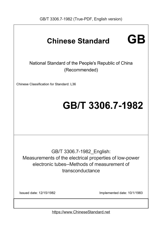 Delivery: <= 3 days. True-PDF full-copy in English will be manually translated and delivered via email. GB/T 3306.7-1982: Measurements of the electrical properties of low-power electronic tubes--Methods of measurement of transconductance Status: Obsolete