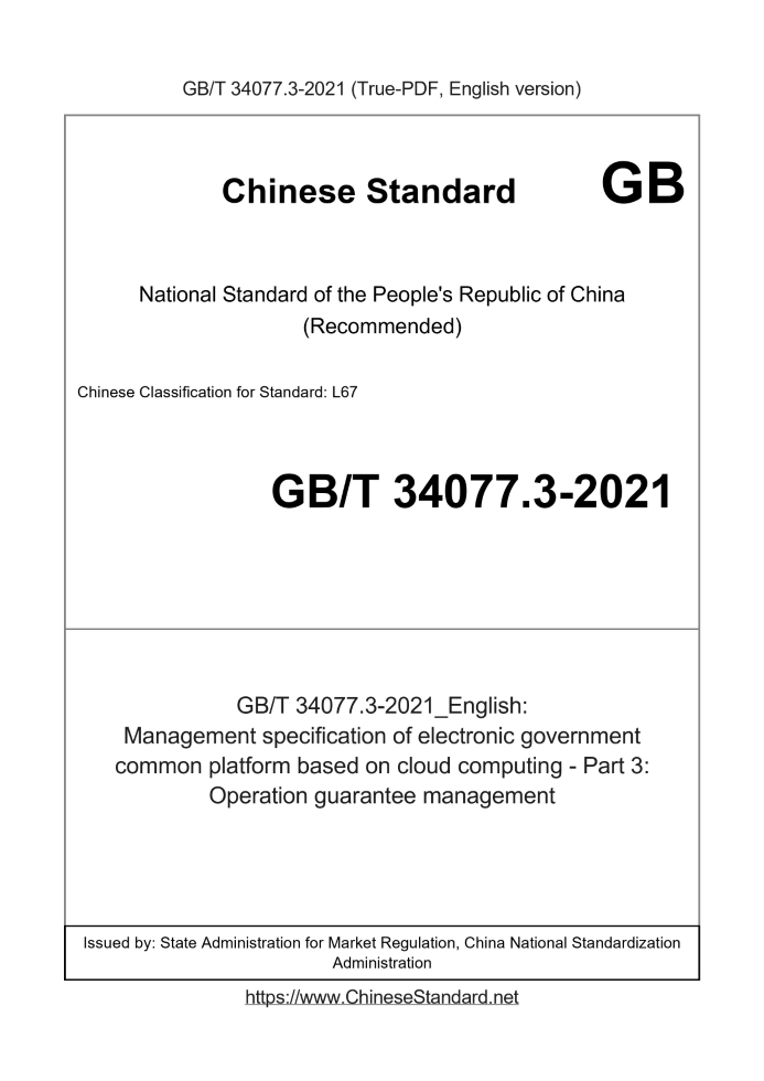 Delivery: <= 4 days. True-PDF full-copy in English will be manually translated and delivered via email. GB/T 34077.3-2021: Management specification of electronic government common platform based on cloud computing - Part 3: Operation guarantee management Status: Valid