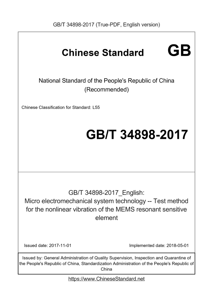 Delivery: <= 3 days. True-PDF full-copy in English will be manually translated and delivered via email. GB/T 34898-2017: Micro electromechanical system technology -- Test method for the nonlinear vibration of the MEMS resonant sensitive element Status: Valid