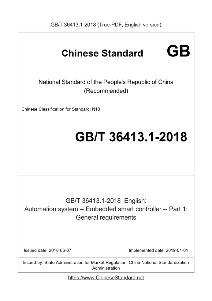 Delivery: <= 3 days. True-PDF full-copy in English will be manually translated and delivered via email. GB/T 36413.1-2018: Automation system -- Embedded smart controller -- Part 1: General requirements Status: Valid