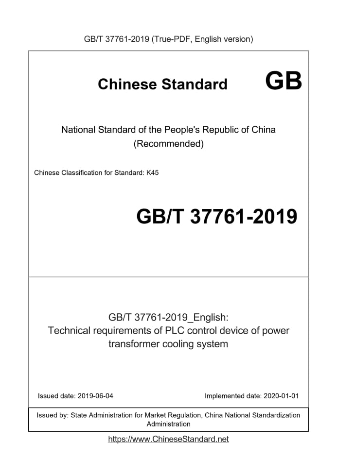 GB/T 37761-2019: Technical requirements of PLC control device of power transformer cooling system