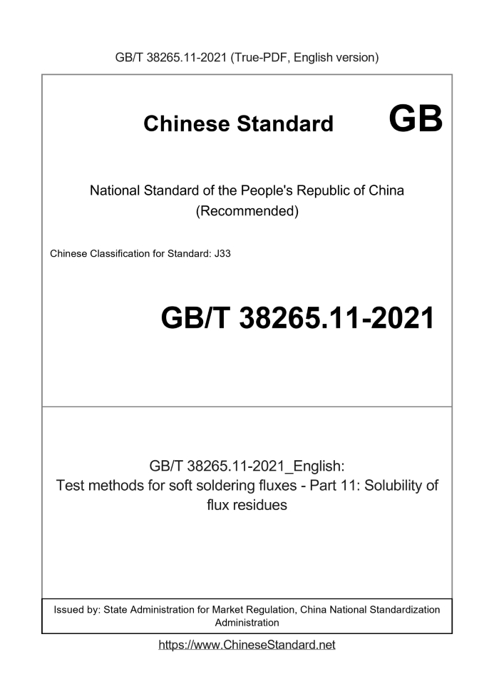 GB/T 38265.11-2021: Test methods for soft soldering fluxes - Part 11: Solubility of flux residues