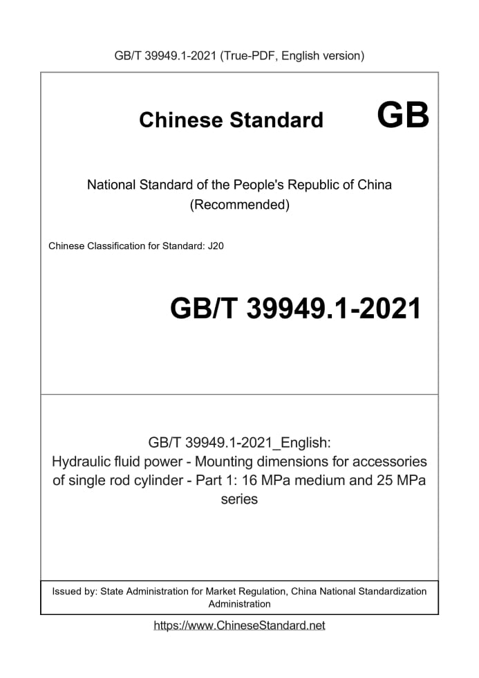 GB/T 39949.1-2021: Hydraulic fluid power - Mounting dimensions for accessories of single rod cylinder - Part 1: 16 MPa medium and 25 MPa series