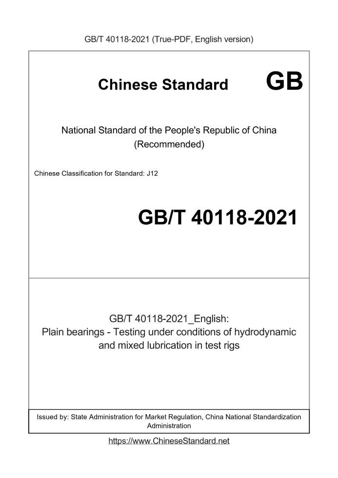Delivery: <= 4 days. True-PDF full-copy in English will be manually translated and delivered via email. GB/T 40118-2021: Plain bearings - Testing under conditions of hydrodynamic and mixed lubrication in test rigs Status: Valid