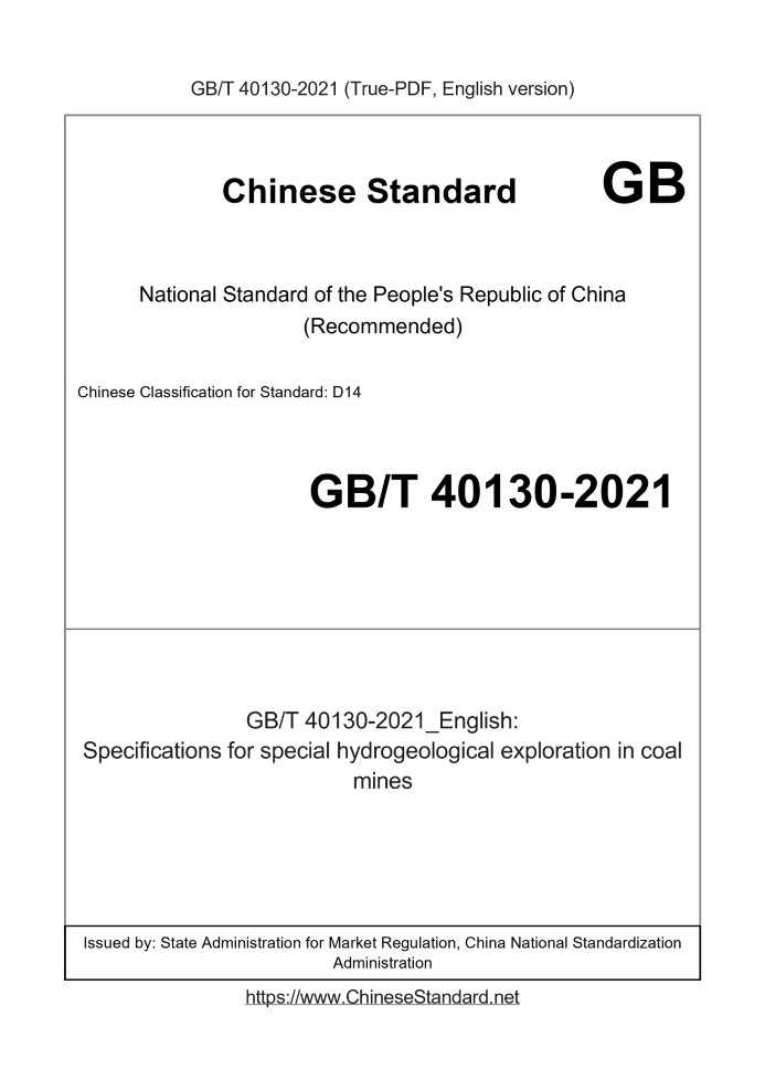 Delivery: <= 7 days. True-PDF full-copy in English will be manually translated and delivered via email. GB/T 40130-2021: Specifications for special hydrogeological exploration in coal mines Status: Valid