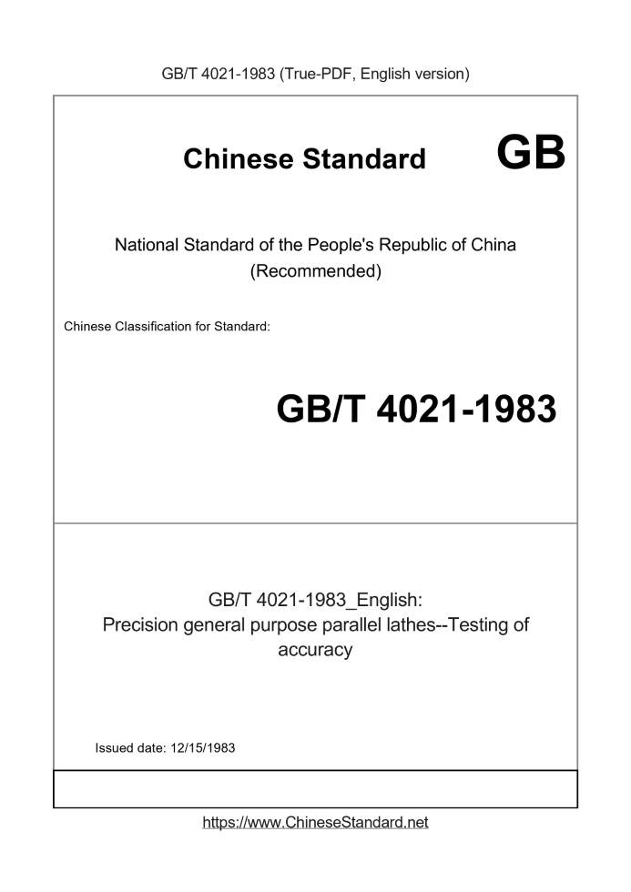 Basic dataStandard ID: GB/T 4021-1983 (GB/T4021-1983)Description (Translated English): Precision general purpose parallel lathes--Testing of accuracy Sector / Industry: National Standard (Recommended) Date of Issue: 12/15/1983 Tips & Frequently Asked Questions:Question 1: How long will the true-PDF of GB/T 4021-1983_English be delivered?Answer: Upon your order, we will start to translate GB/T 4021-1983_English as soon as possible, and keep you informed of the progress. The lead time is typically 1 ~ 3 working days. The lengthier the document the longer the lead time.Question 2: Can I share the purchased PDF of GB/T 4021-1983_English with my colleagues?Answer: Yes. The purchased PDF of GB/T 4021-1983_English will be deemed to be sold to your employer/organization who actually pays for it, including your colleagues and your employer's intranet.Question 3: Does the price include tax/VAT?Answer: Yes. Our tax invoice, downloaded/delivered in 9 seconds, includes all tax/VAT and complies with 100+ countries' tax regulations (tax exempted in 100+ countries) -- See Avoidance of Double Taxation Agreements (DTAs): List of DTAs signed between Singapore and 100+ countriesQuestion 4: Do you accept my currency other than USD?Answer: Yes. If you need your currency to be printed on the invoice, please write an email to Sales@ChineseStandard.net. In 2 working-hours, we will create a special link for you to pay in any currencies. Otherwise, follow the normal steps: Add to Cart -- Checkout -- Select your currency to pay. |