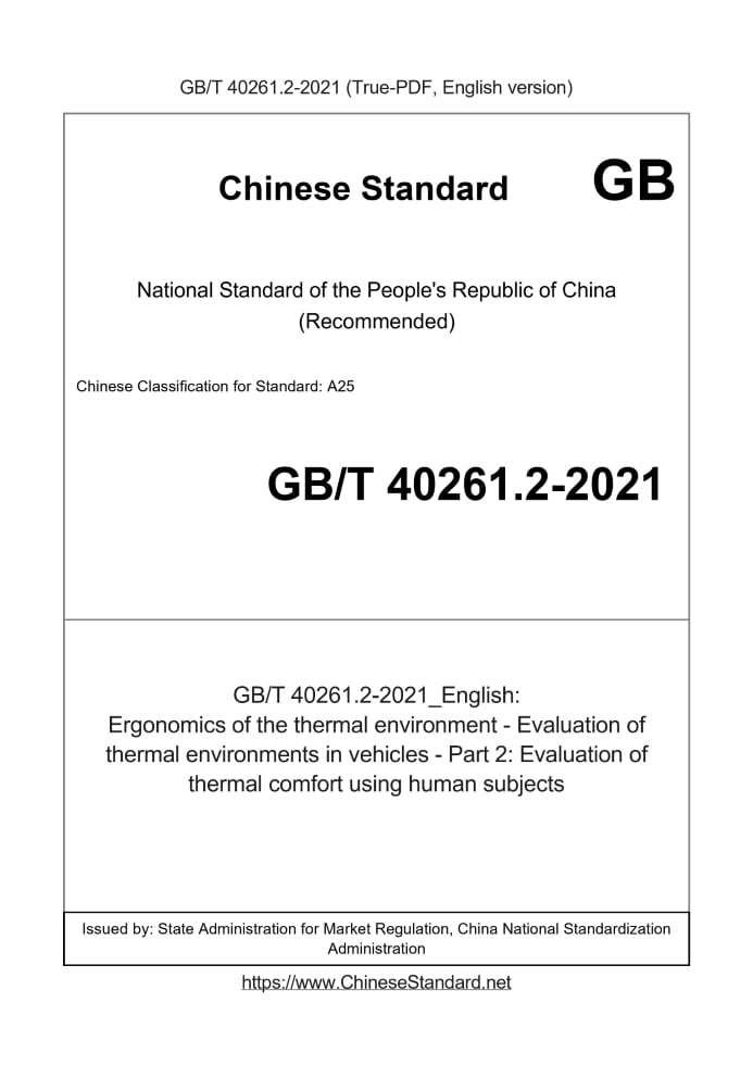 GB/T 40261.2-2021: Ergonomics of the thermal environment - Evaluation of thermal environments in vehicles - Part 2: Evaluation of thermal comfort using human subjects
