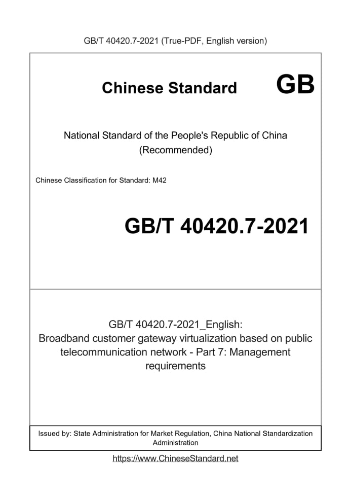 Delivery: <= 3 days. True-PDF full-copy in English will be manually translated and delivered via email. GB/T 40420.7-2021: Broadband customer gateway virtualization based on public telecommunication network - Part 7: Management requirements Status: Valid