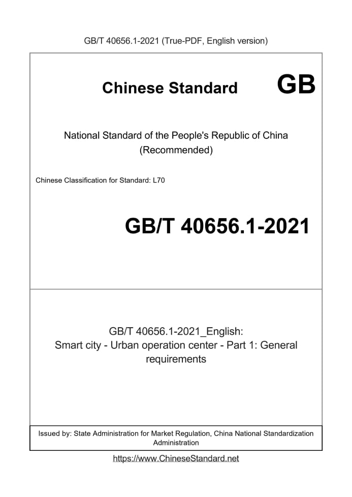 Delivery: <= 3 days. True-PDF full-copy in English will be manually translated and delivered via email. GB/T 40656.1-2021: Smart city - Urban operation center - Part 1: General requirements Status: Valid