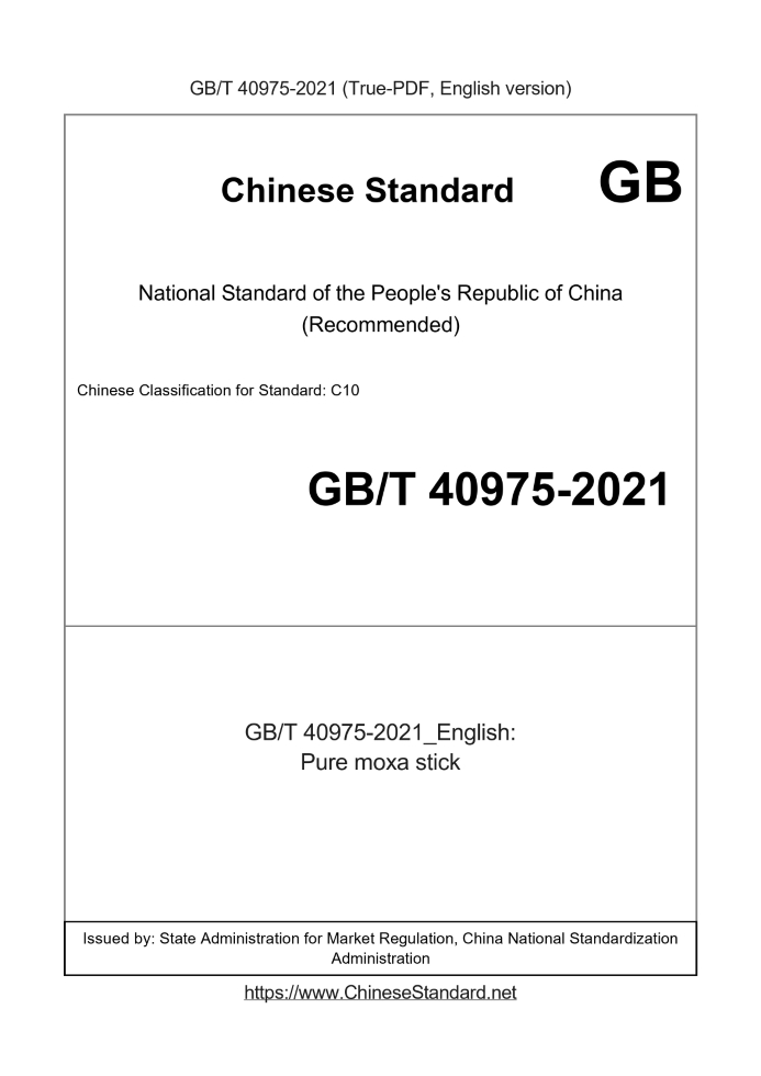Delivery: <= 3 days. True-PDF full-copy in English will be manually translated and delivered via email. GB/T 40975-2021: Pure moxa stick Status: Valid