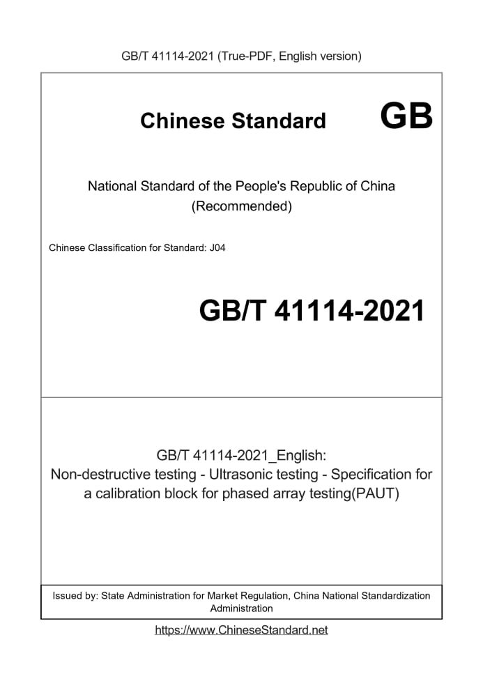 Delivery: <= 4 days. True-PDF full-copy in English will be manually translated and delivered via email. GB/T 41114-2021: Non-destructive testing - Ultrasonic testing - Specification for a calibration block for phased array testing(PAUT) Status: Valid