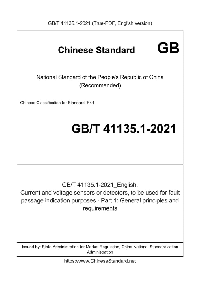 GB/T 41135.1-2021: Current and voltage sensors or detectors, to be used for fault passage indication purposes - Part 1: General principles and requirements