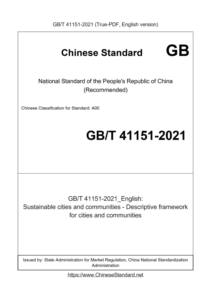 Delivery: <= 6 days. True-PDF full-copy in English will be manually translated and delivered via email. GB/T 41151-2021: Sustainable cities and communities - Descriptive framework for cities and communities Status: Valid