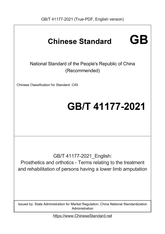GB/T 41177-2021204 Add to Cart 3 days Prosthetics and orthotics - Terms relating to the treatment and rehabilitation of persons having a lower limb amputation Valid
