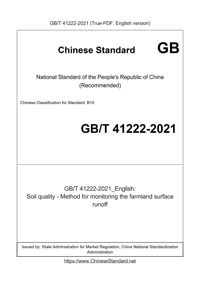 Delivery: <= 4 days. True-PDF full-copy in English will be manually translated and delivered via email. GB/T 41222-2021: Soil quality - Method for monitoring the farmland surface runoff Status: Valid