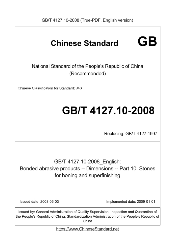 Delivery: <= 3 days. True-PDF full-copy in English will be manually translated and delivered via email. GB/T 4127.10-2008: Bonded abrasive products -- Dimensions -- Part 10: Stones for honing and superfinishing Status: Valid