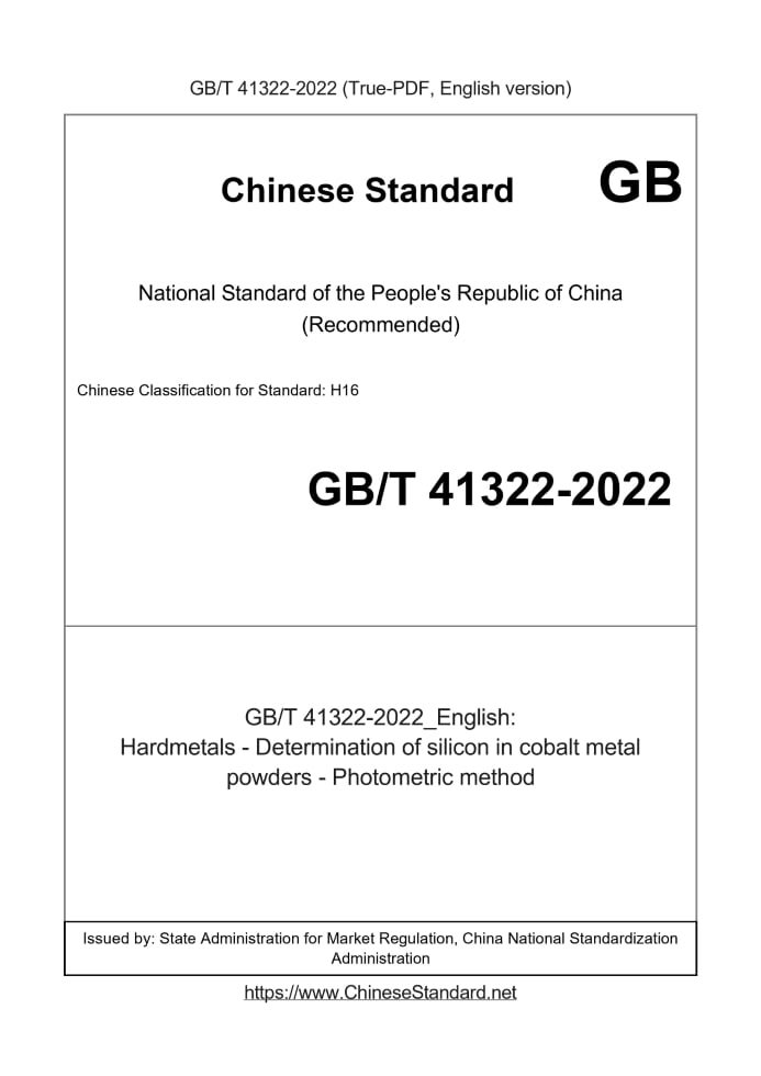 Delivery: <= 3 days. True-PDF full-copy in English will be manually translated and delivered via email. GB/T 41322-2022: Hardmetals - Determination of silicon in cobalt metal powders - Photometric method Status: Valid
