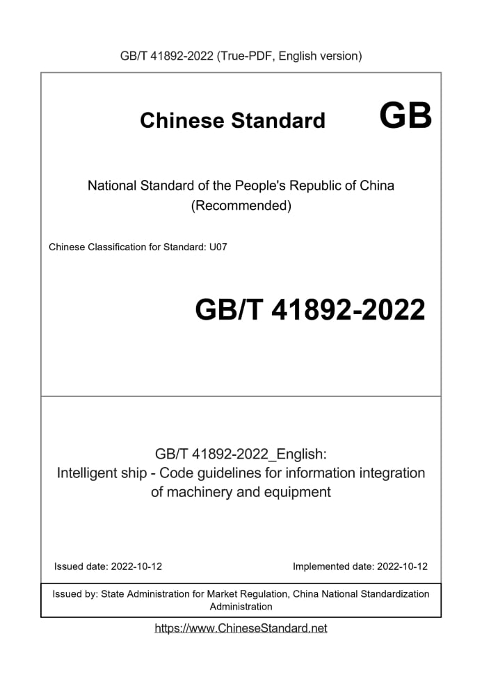 Delivery: <= 13 days. True-PDF full-copy in English will be manually translated and delivered via email. GB/T 41892-2022: Intelligent ship - Code guidelines for information integration of machinery and equipment Status: Valid