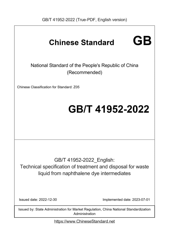 GB/T 41952-2022: Technical specification of treatment and disposal for waste liquid from naphthalene dye intermediates