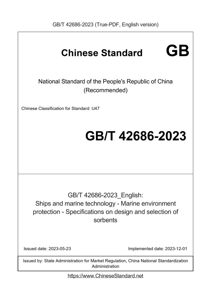 Delivery: <= 3 days. True-PDF full-copy in English will be manually translated and delivered via email. GB/T 42686-2023: Ships and marine technology - Marine environment protection - Specifications on design and selection of sorbents Status: Valid