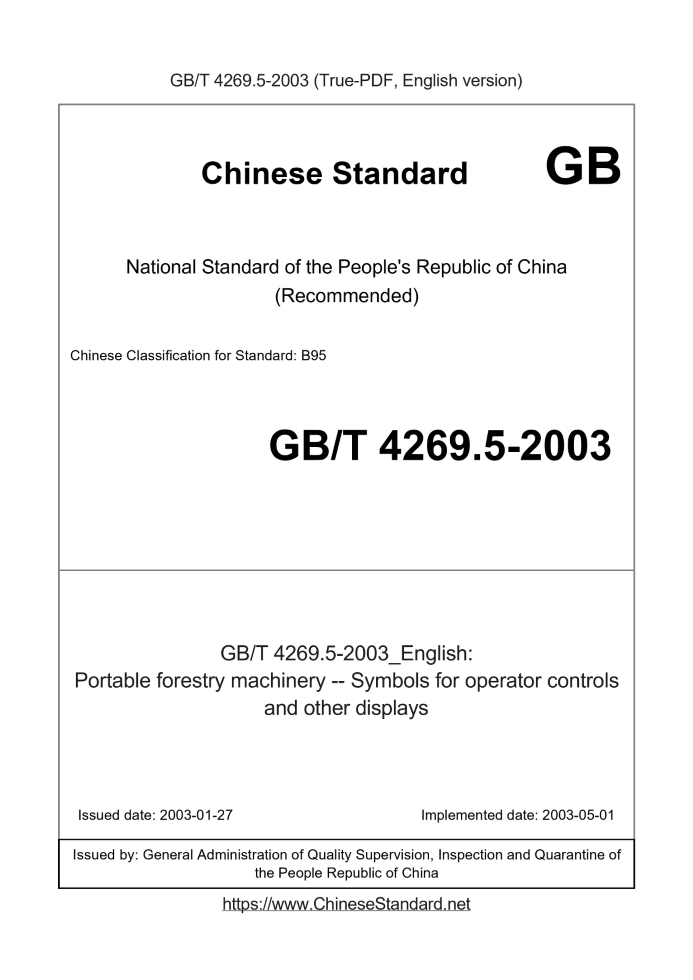 GB/T 4269.5-2003134 Add to Cart 3 days Portable forestry machinery -- Symbols for operator controls and other displays Valid