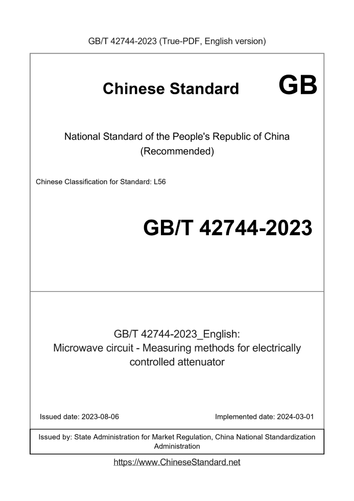 Delivery: <= 4 days. True-PDF full-copy in English will be manually translated and delivered via email. GB/T 42744-2023: Microwave circuit - Measuring methods for electrically controlled attenuator Status: Valid