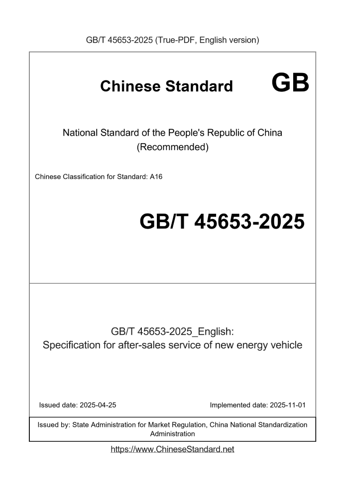 GB/T 45653-2025: Specification for after-sales service of new energy vehicle