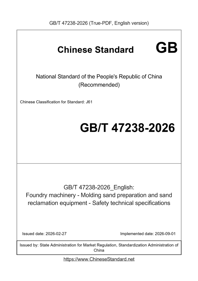 GB/T 47238-2026: Foundry machinery - Molding sand preparation and sand reclamation equipment - Safety technical specifications