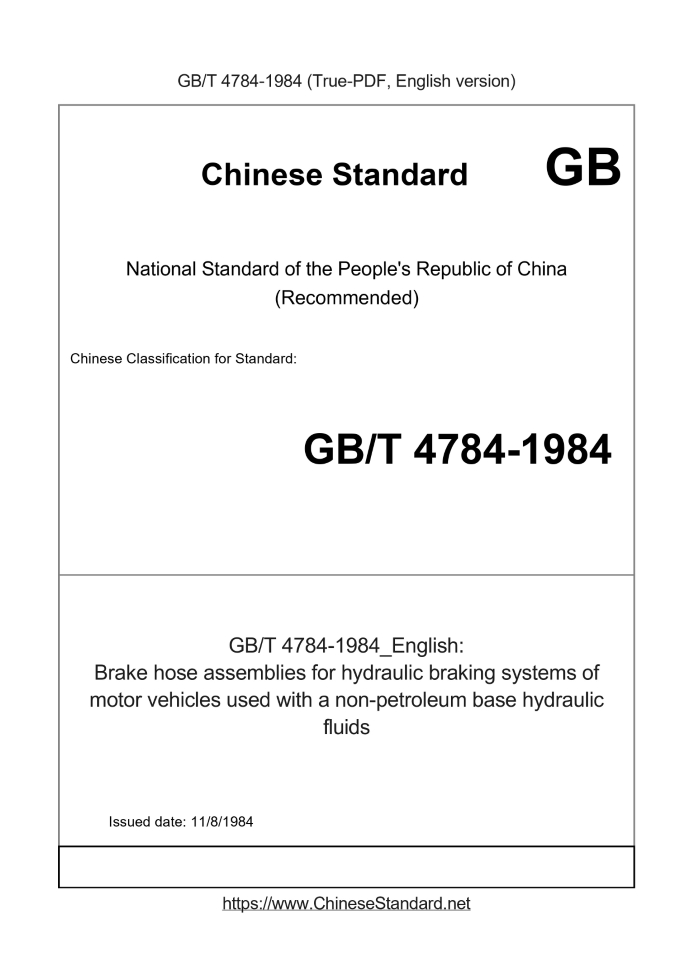 Basic dataStandard ID: GB/T 4784-1984 (GB/T4784-1984)Description (Translated English): Brake hose assemblies for hydraulic braking systems of motor vehicles used with a non-petroleum base hydraulic fluids Sector / Industry: National Standard (Recommended) Date of Issue: 11/8/1984 Tips & Frequently Asked Questions:Question 1: How long will the true-PDF of GB/T 4784-1984_English be delivered?Answer: Upon your order, we will start to translate GB/T 4784-1984_English as soon as possible, and keep you informed of the progress. The lead time is typically 1 ~ 3 working days. The lengthier the document the longer the lead time.Question 2: Can I share the purchased PDF of GB/T 4784-1984_English with my colleagues?Answer: Yes. The purchased PDF of GB/T 4784-1984_English will be deemed to be sold to your employer/organization who actually pays for it, including your colleagues and your employer's intranet.Question 3: Does the price include tax/VAT?Answer: Yes. Our tax invoice, downloaded/delivered in 9 seconds, includes all tax/VAT and complies with 100+ countries' tax regulations (tax exempted in 100+ countries) -- See Avoidance of Double Taxation Agreements (DTAs): List of DTAs signed between Singapore and 100+ countriesQuestion 4: Do you accept my currency other than USD?Answer: Yes. If you need your currency to be printed on the invoice, please write an email to Sales@ChineseStandard.net. In 2 working-hours, we will create a special link for you to pay in any currencies. Otherwise, follow the normal steps: Add to Cart -- Checkout -- Select your currency to pay. |