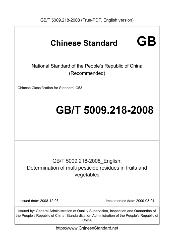 GB/T 5009.218-2008: Determination of multi pesticide residues in fruits and vegetables