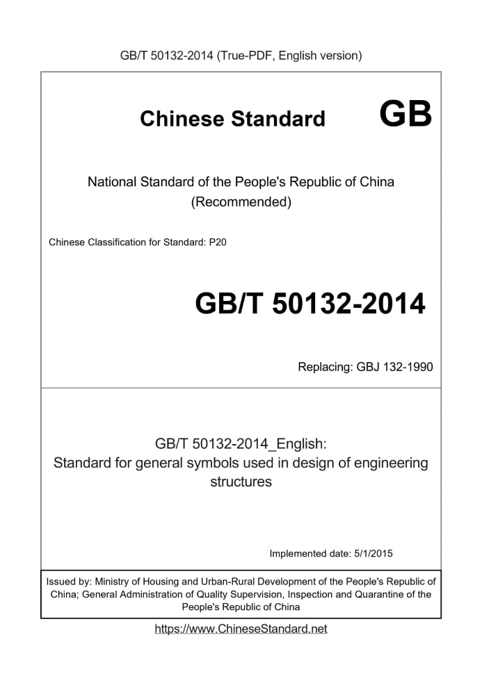 Delivery: <= 13 days. True-PDF full-copy in English will be manually translated and delivered via email. GB/T 50132-2014: Standard for general symbols used in design of engineering structures Status: Valid