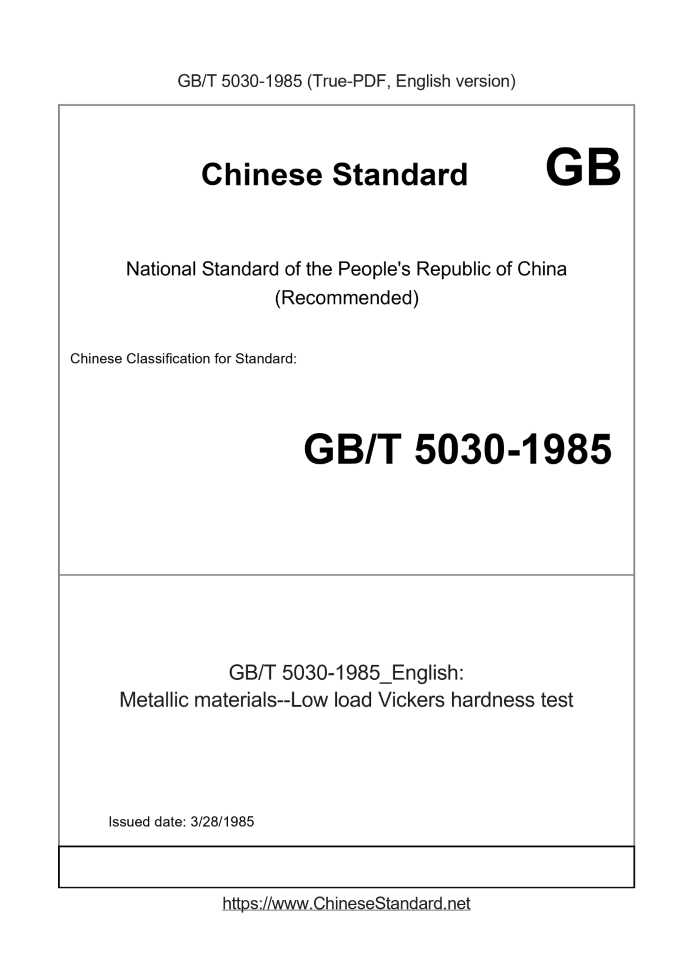 GB/T 5030-1985RFQ ASK 3 days Metallic materials--Low load Vickers hardness test Obsolete
