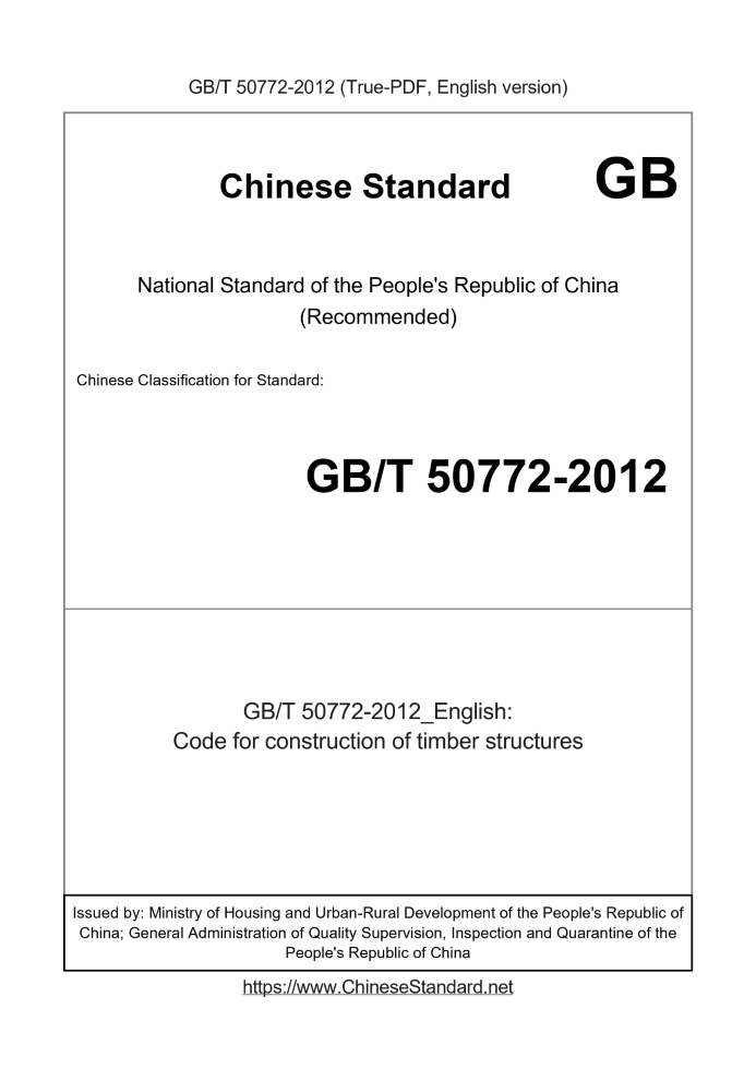 Basic dataStandard ID: GB/T 50772-2012 (GB/T50772-2012)Description (Translated English): Code for construction of timber structures Sector / Industry: National Standard (Recommended) Word Count Estimation: 149,110 Quoted Standard: GB 50005; GB 50016; GB 50206; GB 50222; GB/T 50329; GB 50720; GB/T 192; GB/T 700; GB/T 4823; GB/T 5780; GB/T 5782; GB/T 22349; YB/T 5002 Regulation (derived from): Ministry of Housing and Urban Notice No. 1399 Issuing agency(ies): Ministry of Housing and Urban-Rural Development of the People's Republic of China; General Administration of Quality Supervision, Inspection and Quarantine of the People's Republic of China Summary: This standard applies to the production and installation of wood structure, wood structure protection and fire wood construction. Tips & Frequently Asked Questions:Question 1: How long will the true-PDF of GB/T 50772-2012_English be delivered?Answer: Upon your order, we will start to translate GB/T 50772-2012_English as soon as possible, and keep you informed of the progress. The lead time is typically 1 ~ 3 working days. The lengthier the document the longer the lead time.Question 2: Can I share the purchased PDF of GB/T 50772-2012_English with my colleagues?Answer: Yes. The purchased PDF of GB/T 50772-2012_English will be deemed to be sold to your employer/organization who actually pays for it, including your colleagues and your employer's intranet.Question 3: Does the price include tax/VAT?Answer: Yes. Our tax invoice, downloaded/delivered in 9 seconds, includes all tax/VAT and complies with 100+ countries' tax regulations (tax exempted in 100+ countries) -- See Avoidance of Double Taxation Agreements (DTAs): List of DTAs signed between Singapore and 100+ countriesQuestion 4: Do you accept my currency other than USD?Answer: Yes. If you need your currency to be printed on the invoice, please write an email to Sales@ChineseStandard.net. In 2 working-hours, we will create a special link for you to pay in any currencies. Otherwise, follow the normal steps: Add to Cart -- Checkout -- Select your currency to pay. |