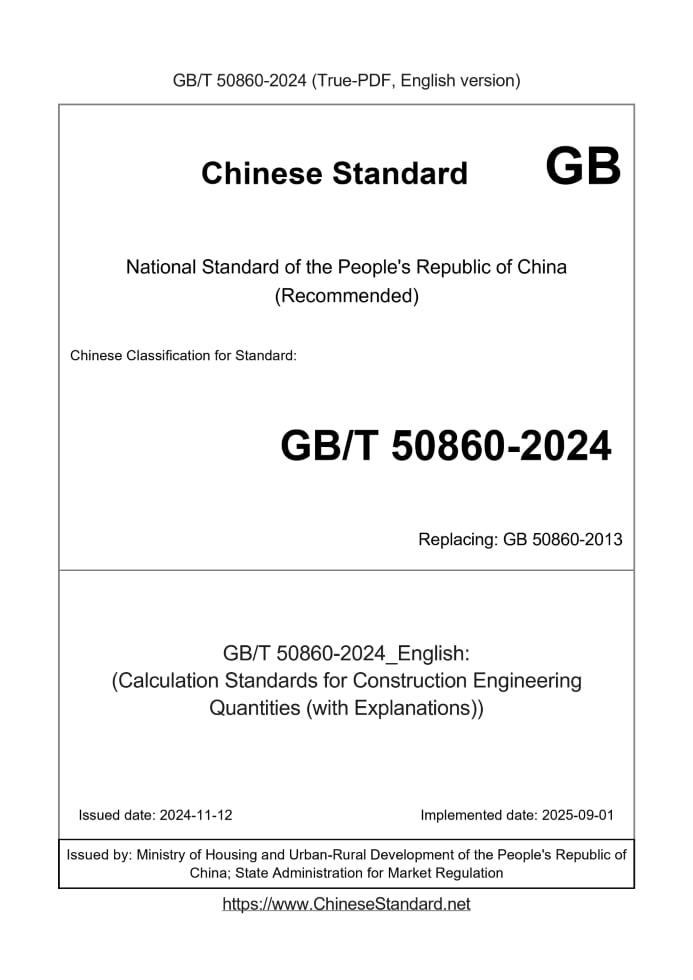 Delivery: <= 9 days. True-PDF full-copy in English will be manually translated and delivered via email. GB/T 50860-2024: (Calculation Standards for Construction Engineering Quantities (with Explanations)) Status: Valid GB/T 50860: Historical versions