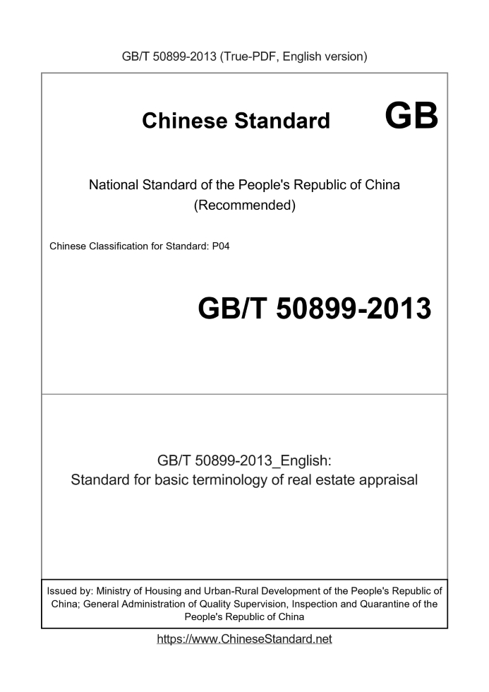 Delivery: <= 13 days. True-PDF full-copy in English will be manually translated and delivered via email. GB/T 50899-2013: Standard for basic terminology of real estate appraisal Status: Valid