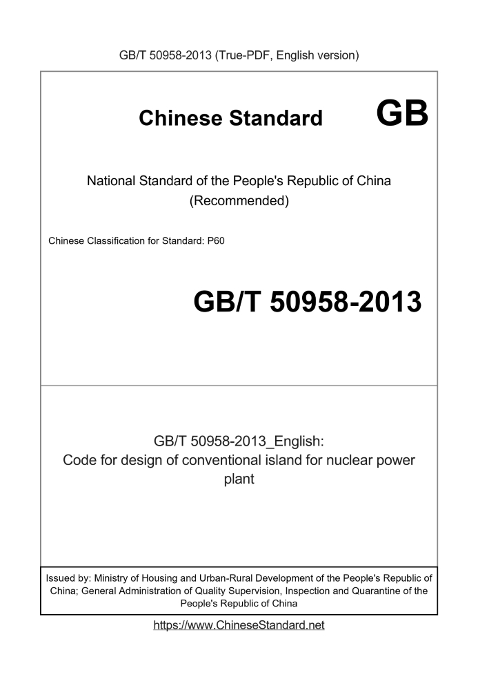 GB/T 50958-2013RFQ ASK 17 days Code for design of conventional island for nuclear power plant Valid