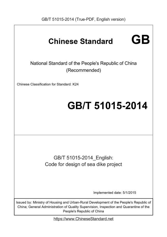 Basic dataStandard ID: GB/T 51015-2014 (GB/T51015-2014)Description (Translated English): Code for design of sea dike project Sector / Industry: National Standard (Recommended) Classification of Chinese Standard: K24 Classification of International Standard: 29.160.30 Word Count Estimation: 280,291 Date of Implementation: 5/1/2015 Quoted Standard: GB 50201; GB 50286; GB 50487; GB 50707; SL 171; SL 188; SL 203; SL 235; SL 677; JTG D40; JTG D50; JTS 145-2 Regulation (derived from): Housing and Urban-Rural Development Bulletin No. 493 2014 Issuing agency(ies): Ministry of Housing and Urban-Rural Development of the People's Republic of China; General Administration of Quality Supervision, Inspection and Quarantine of the People's Republic of China Summary: This standard applies to all types of new, reinforcement, alteration and expansion of the seawall project design. Tips & Frequently Asked Questions:Question 1: How long will the true-PDF of GB/T 51015-2014_English be delivered?Answer: Upon your order, we will start to translate GB/T 51015-2014_English as soon as possible, and keep you informed of the progress. The lead time is typically 1 ~ 3 working days. The lengthier the document the longer the lead time.Question 2: Can I share the purchased PDF of GB/T 51015-2014_English with my colleagues?Answer: Yes. The purchased PDF of GB/T 51015-2014_English will be deemed to be sold to your employer/organization who actually pays for it, including your colleagues and your employer's intranet.Question 3: Does the price include tax/VAT?Answer: Yes. Our tax invoice, downloaded/delivered in 9 seconds, includes all tax/VAT and complies with 100+ countries' tax regulations (tax exempted in 100+ countries) -- See Avoidance of Double Taxation Agreements (DTAs): List of DTAs signed between Singapore and 100+ countriesQuestion 4: Do you accept my currency other than USD?Answer: Yes. If you need your currency to be printed on the invoice, please write an email to Sales@ChineseStandard.net. In 2 working-hours, we will create a special link for you to pay in any currencies. Otherwise, follow the normal steps: Add to Cart -- Checkout -- Select your currency to pay. |
