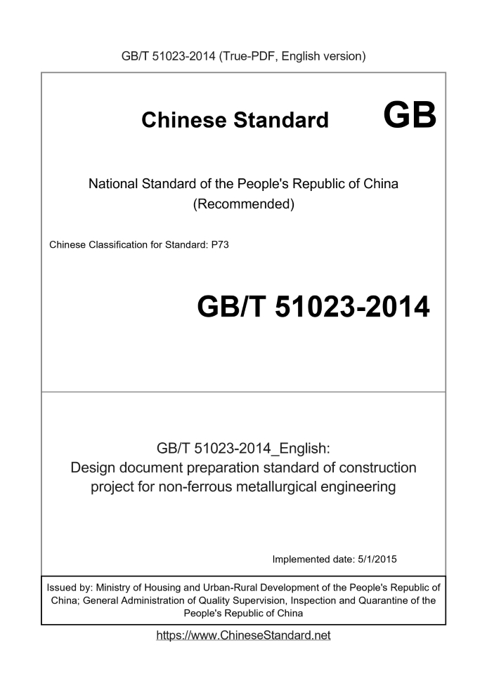 Basic dataStandard ID: GB/T 51023-2014 (GB/T51023-2014)Description (Translated English): Design document preparation standard of construction project for non-ferrous metallurgical engineering Sector / Industry: National Standard (Recommended) Classification of Chinese Standard: P73 Classification of International Standard: 77.010 Word Count Estimation: 151,145 Date of Implementation: 5/1/2015 Quoted Standard: GB 50180; GB/T 20902; YS 5018 Regulation (derived from): People's Republic of China Housing and Urban-Rural Development Ministry Bulletin No. 518 Issuing agency(ies): Ministry of Housing and Urban-Rural Development of the People's Republic of China; General Administration of Quality Supervision, Inspection and Quarantine of the People's Republic of China Summary: This standard applies to the preparation of non-ferrous metal smelting works construction projects in the preliminary design documents. Tips & Frequently Asked Questions:Question 1: How long will the true-PDF of GB/T 51023-2014_English be delivered?Answer: Upon your order, we will start to translate GB/T 51023-2014_English as soon as possible, and keep you informed of the progress. The lead time is typically 1 ~ 3 working days. The lengthier the document the longer the lead time.Question 2: Can I share the purchased PDF of GB/T 51023-2014_English with my colleagues?Answer: Yes. The purchased PDF of GB/T 51023-2014_English will be deemed to be sold to your employer/organization who actually pays for it, including your colleagues and your employer's intranet.Question 3: Does the price include tax/VAT?Answer: Yes. Our tax invoice, downloaded/delivered in 9 seconds, includes all tax/VAT and complies with 100+ countries' tax regulations (tax exempted in 100+ countries) -- See Avoidance of Double Taxation Agreements (DTAs): List of DTAs signed between Singapore and 100+ countriesQuestion 4: Do you accept my currency other than USD?Answer: Yes. If you need your currency to be printed on the invoice, please write an email to Sales@ChineseStandard.net. In 2 working-hours, we will create a special link for you to pay in any currencies. Otherwise, follow the normal steps: Add to Cart -- Checkout -- Select your currency to pay. |
