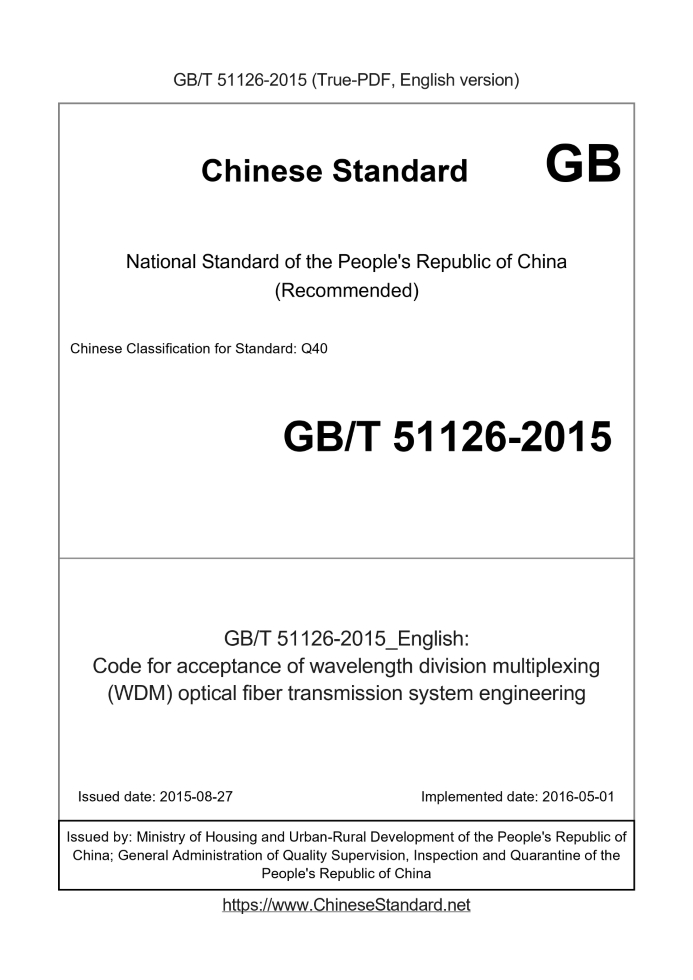 GB/T 51126-2015: Code for acceptance of wavelength division multiplexing (WDM) optical fiber transmission system engineering