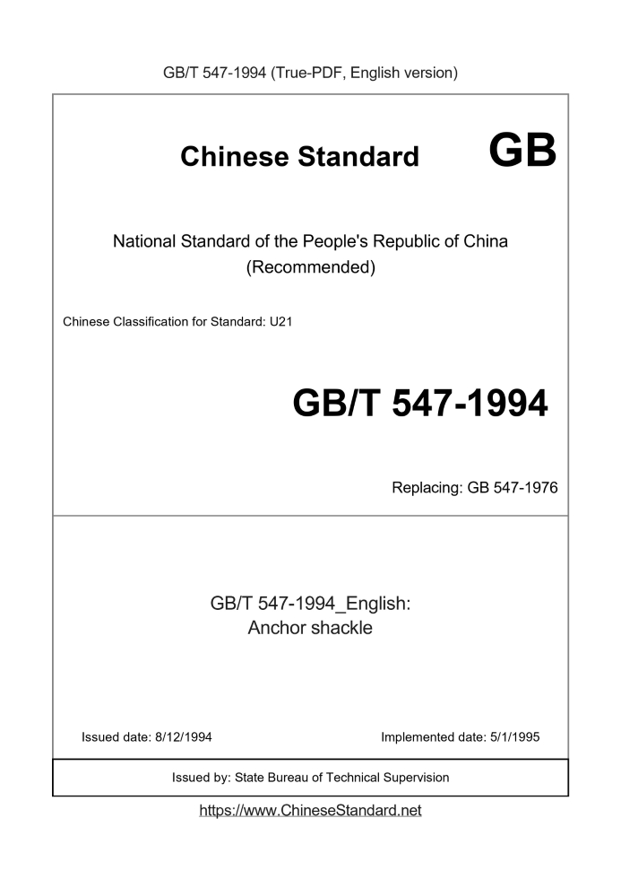 Summary: This standard specifies the anchor shackle product categories, type size and weight. This standard applies to all types of anchors and anchor (chain, cable or fiber cable) is connected with the anchor shackle.