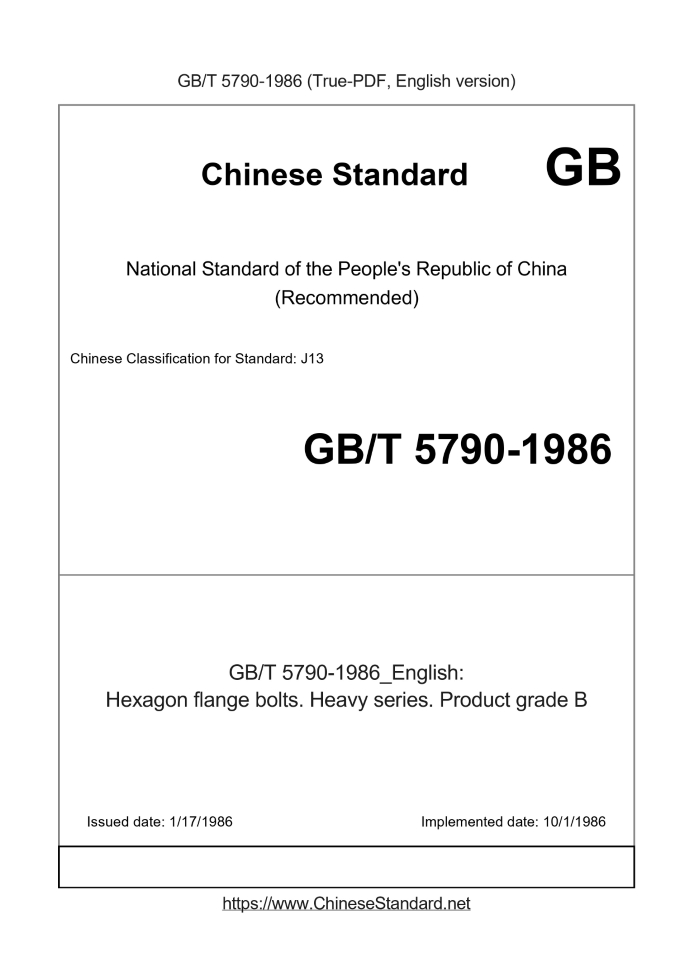 Delivery: <= 2 days. True-PDF full-copy in English will be manually translated and delivered via email. GB/T 5790-1986: Hexagon flange bolts. Heavy series. Product grade B